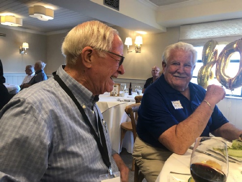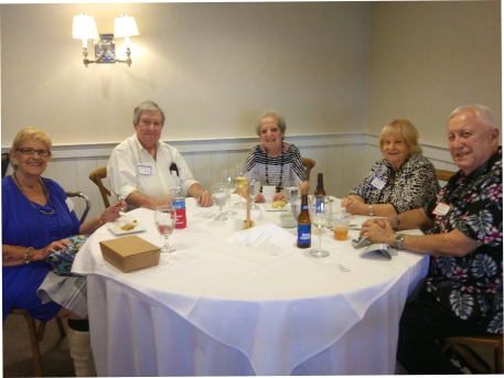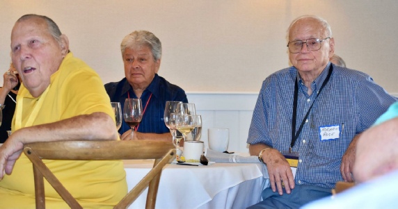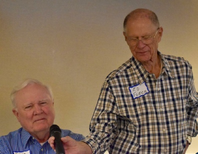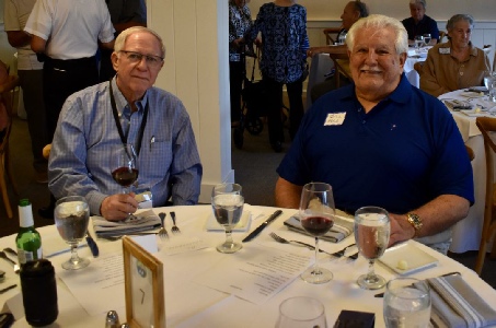 Al Grieshaber & Bill Hold (thinking, “Wow, this MC is hilarious - how much are we paying this guy?!!”) With Fred Galan SWHS ‘61, partner of Rosemarie Wilson Twinam, in background.
