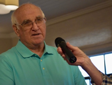 Jeff Gillman telling the group a favorite Miami High memory